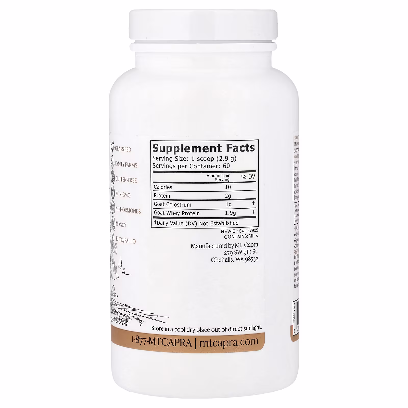 Mt. Capra Goat Colostrum Powder 6 oz (174g) is a premium-quality, nutrient-rich supplement derived from grass-fed goat colostrum. Colostrum is the first form of milk produced after birth and is naturally packed with immune factors, growth factors, antibodies, and essential nutrients that support overall health and wellness.